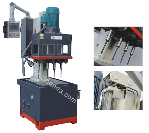 達人牌ZK5223X4A1立式多軸鉆床(采用多軸同步加工),是我公司匯集國內(nèi)外多軸鉆床研制開發(fā)推出的第二代全自動立式可調(diào)多軸鉆床,獲得5項專利,120項技術改進,20000小時的樣機試驗。最多可同時鉆6個孔,鉆孔范圍¢3-¢23,孔距可任意調(diào)整,也可根據(jù)客戶要求制作固定式多軸導板。切削HRC35以下黑色金屬,切削鑄鐵及有色金屬時更能發(fā)揮它的優(yōu)點,適應于大批量零件加工。ZB5223*4A1立式多軸鉆床因其顯著提高工件加工效率、節(jié)省人力成本的特點,產(chǎn)品一經(jīng)推出,即引起熱烈的市場反應。為您省力、省錢、省時,是達人多軸鉆床的使命!